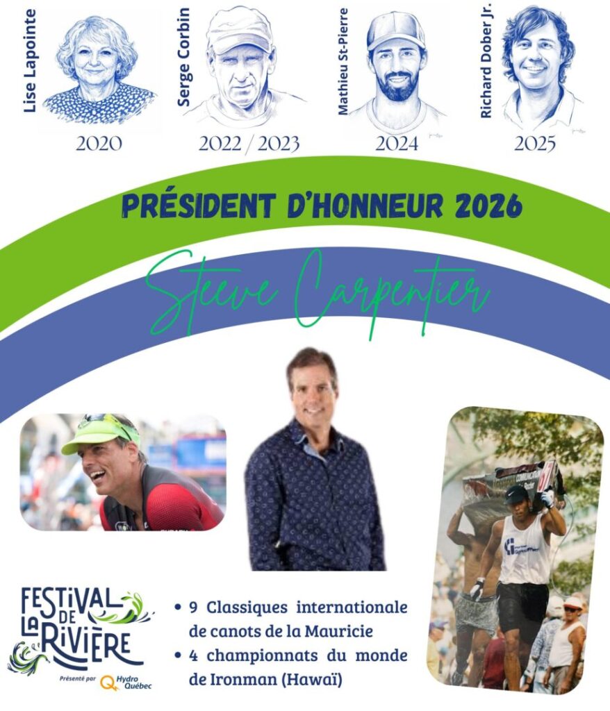 C’est avec beaucoup de fierté que nous vous annonçons que Steeve Carpentier sera le président d’honneur de la 7e édition du Festival de la Rivière! 🌊